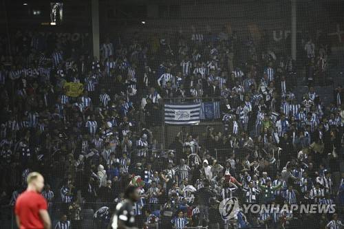 epa09537684 Real Sociedad's fans celebrates after the 0-1 goal during the UEFA Europa League group stage soccer match between Sturm Graz and Real Sociedad in Graz, Austria, 21 October 2021. EPA/CHRISTIAN BRUNA