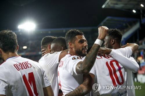 epa09537789 Emerson of Lyon celebrates team's fourth goal during the UEFA Europa League soccer match between Sparta Prague and Olympique Lyon in Prague, Czech Republic, 21 October 2021. EPA/MARTIN DIVISEK