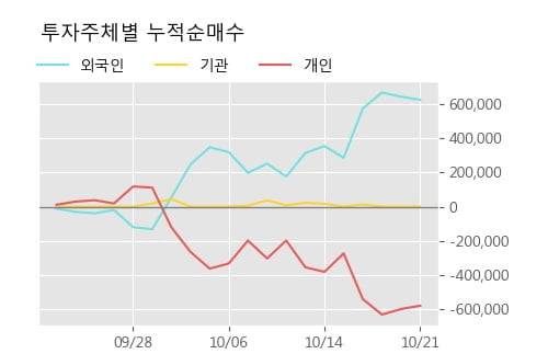 지난 한달을 기준으로 보면 외국인이 63.6만주를 순매수했고, 기관도 591주를 순매수했다. 반면 개인들은 59.0만주를 순매도한 것으로 나타났다. 같은 기간 이 종목의 거래비중은 외국인과 개인이 각각 10.8%, 87.8%로 비중이 높다.