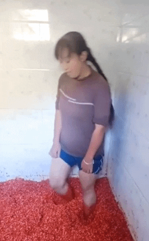 해당 영상에는 맨발로 고춧가루를 지근지근 밟는 여성이 담겼다. 이 여성은 두건이나 마스크도 하지 않은 채 대화를 하는 모습이다. 외신은 “중국의 한 공장에서 여성들이 맨발로 고추를 밟아 양념장을 만든다”고 전했다.