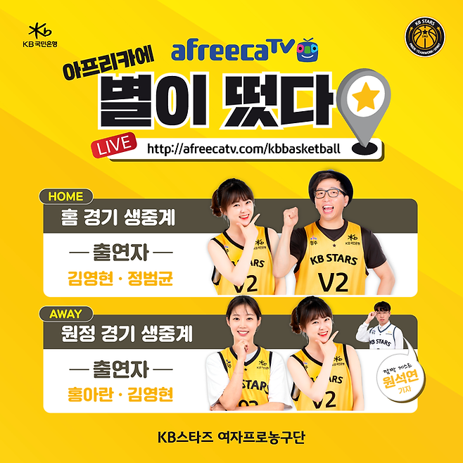 한편, KB스타즈의 개막전은 오는 24일(일) 오후 1시 45분에 삼성생명과의 원정경기로 펼쳐지며 김영현, 홍아란과 더불어 원석연 기자가 게스트로 참여하여 힘을 보탤 예정이다.