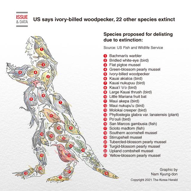 [Graphic News] US says ivory-billed woodpecker, 22 other species extinct