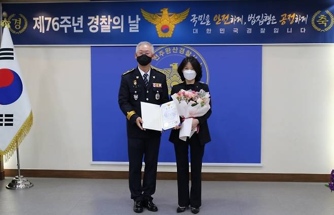[쿠키뉴스] 김영재 기자 =롯데백화점 전주점(점장 이주영)이 지난 21일 범죄 피해 이주여성을 보호하고 지원한 공로를 인정받아 전주완산경찰서로부터 ‘경찰의 날’ 기념 감사장을 수여받았다.