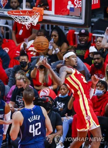 epa09538108 Atlanta Hawks forward Cam Reddish (R) in action against Dallas Mavericks forward Maxi Kleber (L) of Germany during the second half of the NBA basketball game between the Dallas Mavericks and the Atlanta Hawks at State Farm Arena in Atlanta, Georgia, USA, 21 October 2021. EPA/ERIK S. LESSER SHUTTERSTOCK OUT