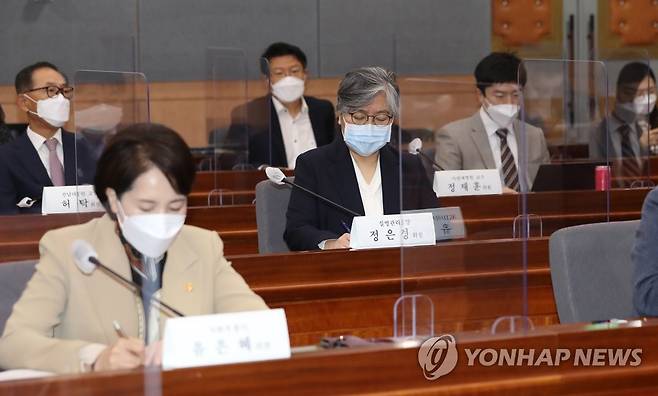 (서울=연합뉴스) 백승렬 기자 = 유은혜 사회부총리와 정은경 질병관리청장이 22일 정부서울청사에서 열린 제2차 코로나19 일상회복 지원위원회의에서 자리에 앉아 있다. 2021.10.22