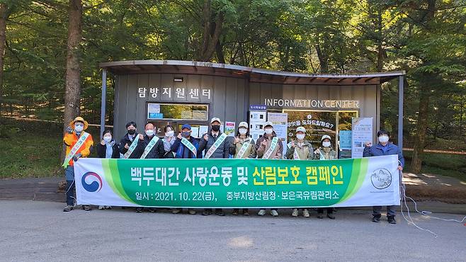 □ 중부지방산림청(청장 강대석)은 22일 속리산국립공원에서 가을철 등산객을 대상으로 백두대간 사랑운동 캠페인을 실시했다고 밝혔다.