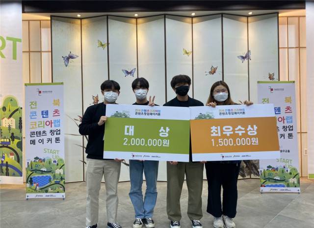 한국농수산대학(총장 조재호, 이하 한농대)은 전라북도, 전라북도콘텐츠융합진흥원이 공동 주최한 '2021년 전북콘텐츠코리아랩 콘텐츠 창업 메이커톤 경진대회'에서 한농대 재학생이 대상과 최우수상을 수상했다고 밝혔다.