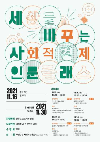 부평구, 세상을 바꾸는 사회적경제 인문클래스 수강생 모집