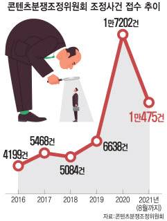콘텐츠 이용자 피해 실태조사는 한국콘텐츠진흥원이 2016년부터 진행한 사업이다. 이용자 피해 종류와 규모 등을 파악해 이용자 보호 강화와 사업자 개선사항을 도출하려는 목적으로 시작됐다. 작년에는 코로나19로 콘텐츠 관련 분쟁이 늘어나며 콘텐츠분쟁조정위원회 강화 방안을 마련하기 위한 연구로 대체됐다. 콘분위에 접수된 분쟁 건수는 2019년 6638건에서 2020년 1만7202건으로 3배 가까이 늘었다.