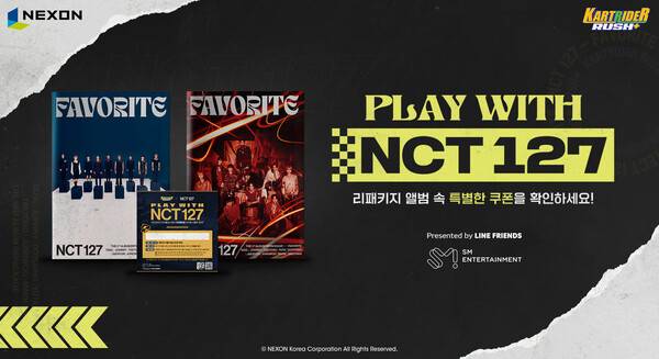 먼저, NCT 127의 정규 3집 리패키지 'Favorite' 앨범을 구매하는 고객에게 '카러플' 컬래버레이션 아이템이 담긴 쿠폰을 증정한다. 해당 쿠폰을 게임에서 사용하면 카트에 부착 가능한 NCT 127 멤버의 사인 스티커 및 NCT 127 엠블럼 풍선 아이템을 얻을 수 있다. 리패키지 앨범은 10월 25일 정식 발매되며, 현재 예약 구매가 가능하다.
