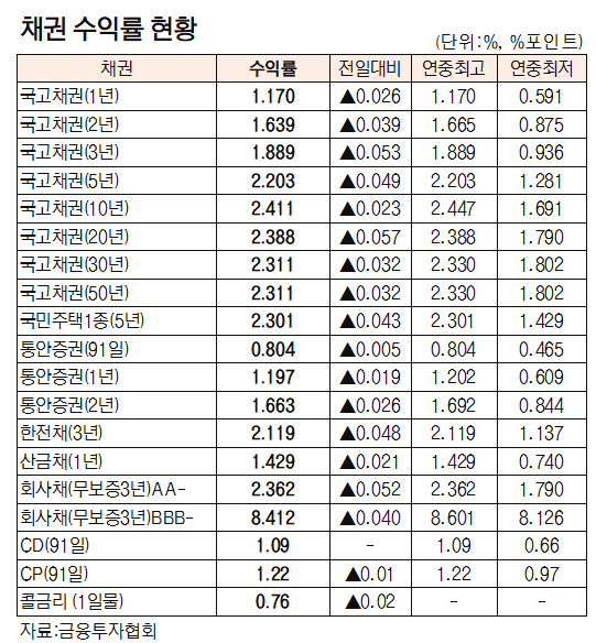 [표]채권 수익률 현황(10월 22일)