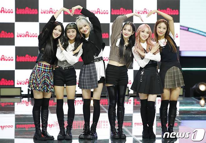 (서울=뉴스1) 권현진 기자 = 그룹 버가부(bugaboo)가 22일 오후 서울 상암동 SBS 프리즘타워에서 진행된 첫 번째 싱글 앨범 ‘bugAboo(버가부)’ 데뷔 쇼케이스에서 포즈를 취하고 있다. 왼쪽부터 레이니, 은채, 초연, 시안, 유우나, 지인.