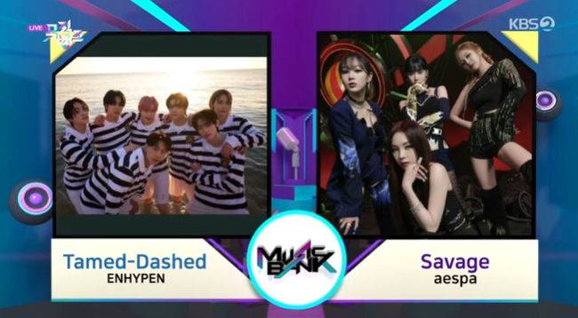 이날 1위 후보에는 엔하이픈 'Tamed-Dashed'와 에스파 'Savage'가 이름을 올렸다.