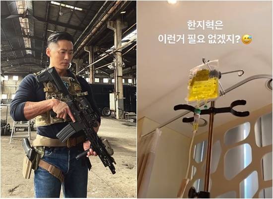 공개된 사진에는 링거 수액과 함께 '한지혁은 이런 거 필요 없겠지?'라는 문구가 담겼다.