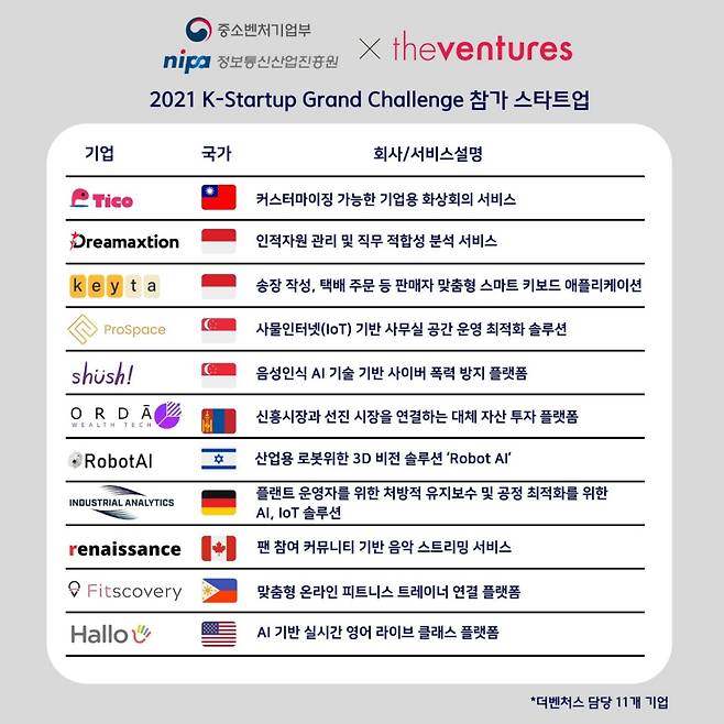더벤처스 관계자는 "제6회 글로벌 창업경진대회 K-스타트업 그랜드챌린지를 통해 해외 스타트업들의 액셀러레이팅과 국내 진출을 지원한다"고 했다.