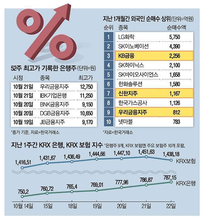 금리상승기..외국인, 은행株 쓸어 담았다