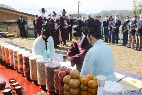 제관으로는 초헌관 김재종 옥천군수, 아헌관 유재목 군의회 부의장, 종헌관 유정현 문화원장이 맡아 정성껏 헌작했다. 이어 김연철 이원면장, 은진 송씨 종중, 유림, 지역 주민 등이 헌화했다.