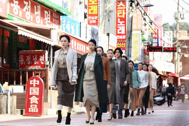 서울 금천구 독산동의 골목길에서 22일 모델들이 금천구 소재 봉제 업체가 만든 옷을 입고 패션쇼를 진행하고 있다. /연합뉴스