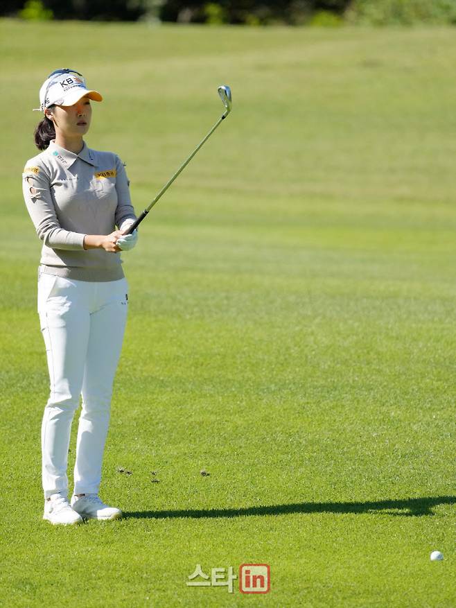 [이데일리 골프in(부산)=조원범 기자]22일 부산에 위치한 ‘LPGA 인터내셔널 부산’에서 국내 유일의 LPGA 대회인 'BMW 레이디스 챔피언십' (총상금 200만 달러, 우승 상금 30만 달러)'2라운드가 열렸다.오지현이 5번홀에서 경기를 하고 있다.