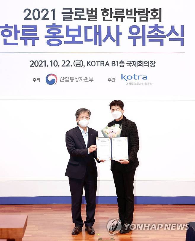 (서울=연합뉴스) KOTRA가 오는 11월 1일부터 15일까지 온라인으로 개최하는 '2021 글로벌 한류박람회' 홍보대사로 한류스타 '2PM 우영'과 '있지(ITZY)'를 위촉했다고 22일 밝혔다.