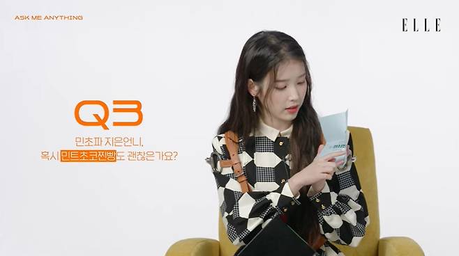 22일 오후 엘르 코리아 유튜브 채널에는 '[충격] 아이유 탈민초파 선언?! 아이유에게 궁금한 8가지 Q & A'라는 제목의 영상이 게재됐다. 공개된 영상에서 아이유는 AMA(무엇이든 물어보세요)를 통해 전달된 여러 질문에 대한 대답을 이어갔다.