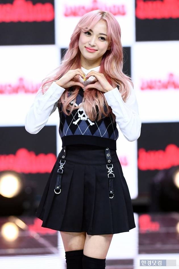 그룹 버가부 유우나가 22일 오후 서울 상암동 SBS프리즘타워에서 열린 데뷔 싱글 '버가부(bugAboo)' 발매 기념 쇼케이스에 참석해 포토타임을 갖고 있다.