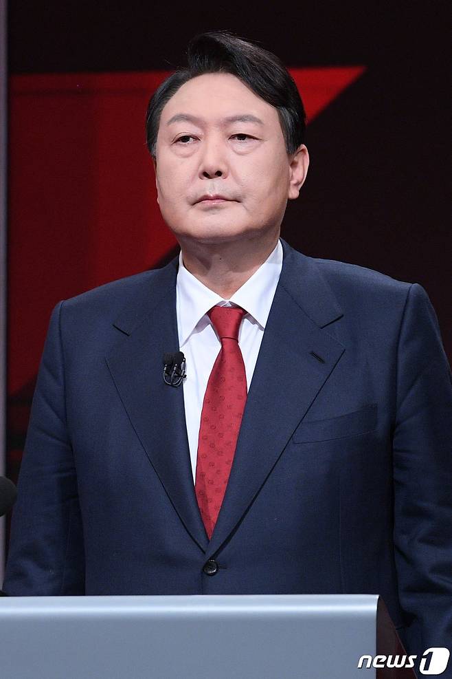 (서울=뉴스1) 국회사진취재단 = 윤석열 국민의힘 대선 예비후보가 22일 오후 서울 마포구 상암동 YTN에서 대선 경선 6차 토론회를 앞두고 리허설을 하고 있다. 2021.10.22/뉴스1