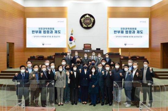 국민권익위 전현희 위원장은 “풀뿌리 민주주의의 산실인 지방의회와 힘을 모아 공직사회의 청렴성과 공정성을 획기적으로 개선해 세계적인 청렴선진국으로 확실하게 자리매김 하겠다”고 말했다.