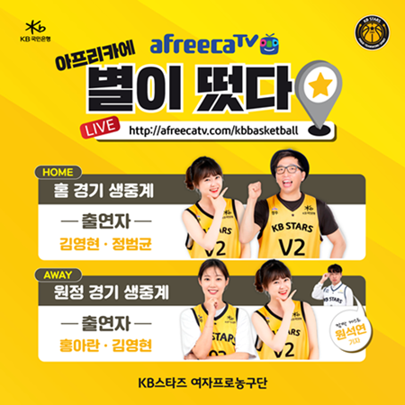 작년 2월 코로나19 확산에 따른 무관중 경기 진행 시 팬들과의 적극적인 소통을 위해 여자프로농구 최초로 편파중계와 온라인 응원을 이어온 KB스타즈는 올 시즌 역시 아프리카TV를 통해 전 경기 편파중계를 실시한다.