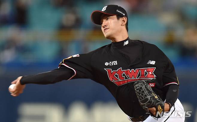 [대구=뉴시스] 이무열 기자 = 22일 오후 대구 수성구 삼성라이온즈파크에서 열린 ‘2021 신한은행 SOL KBO리그’ 삼성 라이온즈와 KT 위즈의 경기, 1회말 KT 선발투수 고영표가 역투하고 있다. 2021.10.22. lmy@newsis.com