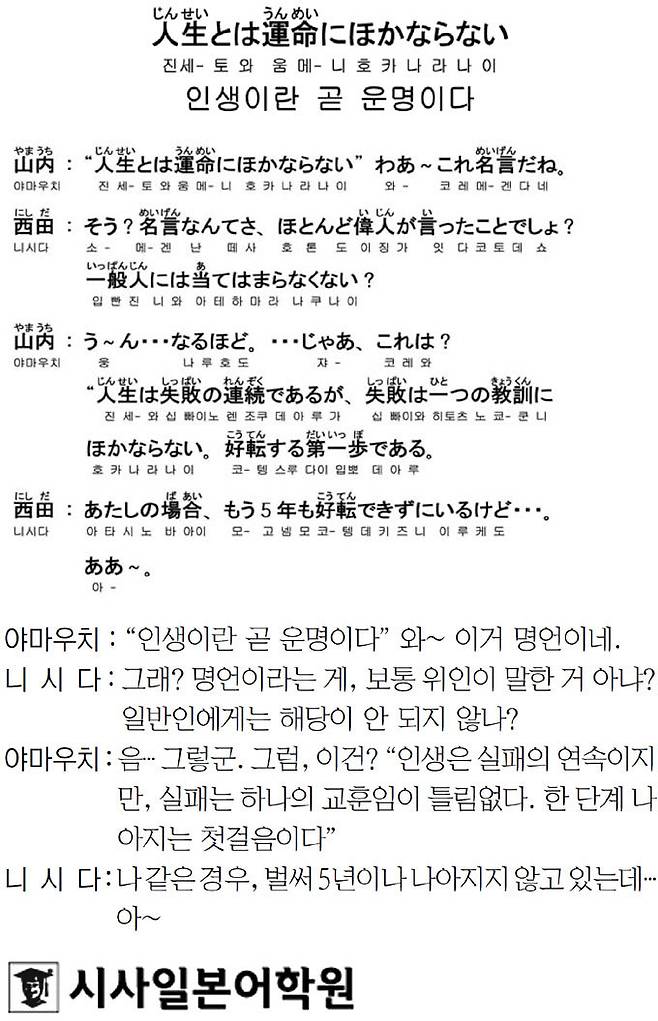 [시사일본어학원의 초단기 일본어 회화] 인생이란 곧 운명이다