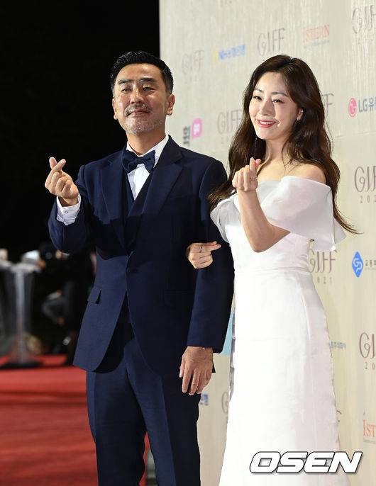 배우 류승룡과 오나라가 개막식 레드카펫을 밟으며 포즈를 취하고 있다. 2021.10.22 /sunday@osen.co.kr