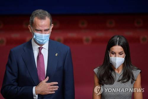 epa09538722 Spain's King Felipe VI (L) and Queen Letizia (R) arrive to grant an audience granted to jury presidents, members of the Princess patronages and Foundation and those awarded with the Asturias Medals within the Princess of Asturias Awards 2021 at the Reconquista Hotel in Oviedo, Asturias, Spain, 22 October 2021. EPA/Eloy Alonso