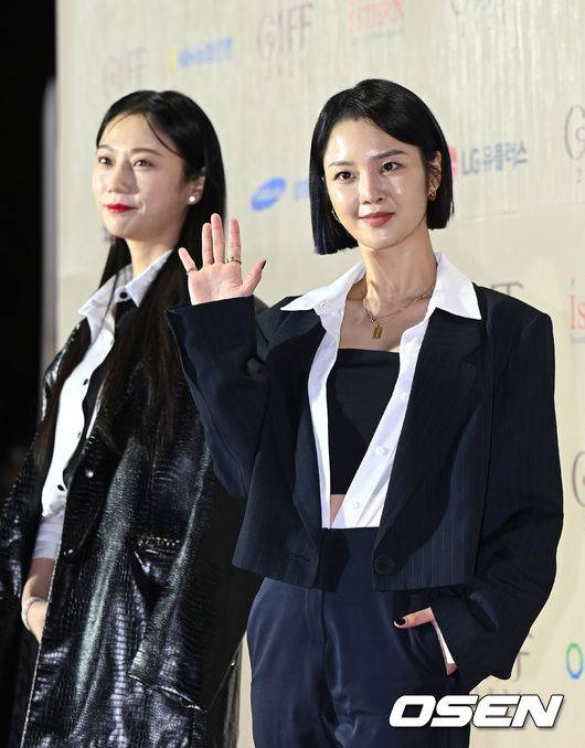 배우 김니나와 최수임이 개막식 레드카펫을 밟으며 포즈를 취하고 있다. 2021.10.22 /sunday@osen.co.kr