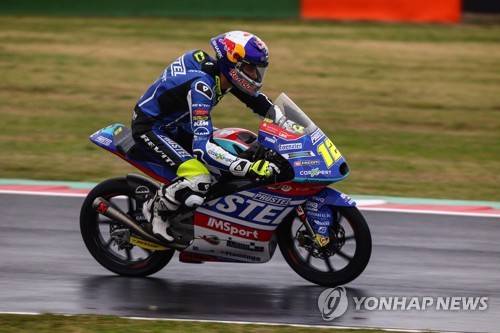 epa09538800 Filip Salac of Snipers Team during the first practice session for the Motorcycling Grand Prix of Italy and Emilia-Romagna at Misano World Circuit 'Marco Simoncelli' at Misano Adriatico, Rivieria di Rimini, Italy, 22 October 2021. The Motorcycling Grand Prix of Italy and Emilia-Romagna takes place on 24 October 2021. EPA/DAVIDE GENNARI