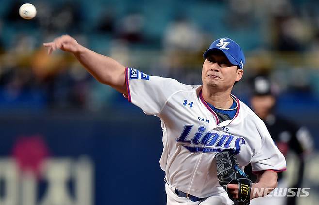 [대구=뉴시스] 이무열 기자 = 22일 오후 대구 수성구 삼성라이온즈파크에서 열린 ‘2021 신한은행 SOL KBO리그’ 삼성 라이온즈와 KT 위즈의 경기, 8회초 2사 1루 상황에서 등판한 삼성 마무리 투수 오승환이 역투하고 있다. 2021.10.22. lmy@newsis.com