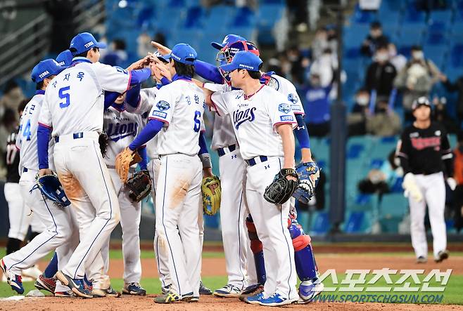 22일 대구 삼성라이온즈파크에서 KBO리그 삼성과 KT의 경기가 열렸다. 삼성이 KT에 4대 2로 승리했다. 경기 종료 후 승리의 기쁨을 나누고 있는 삼성 선수들. 대구=송정헌 기자 songs@sportschosun.com/2021.10.22/