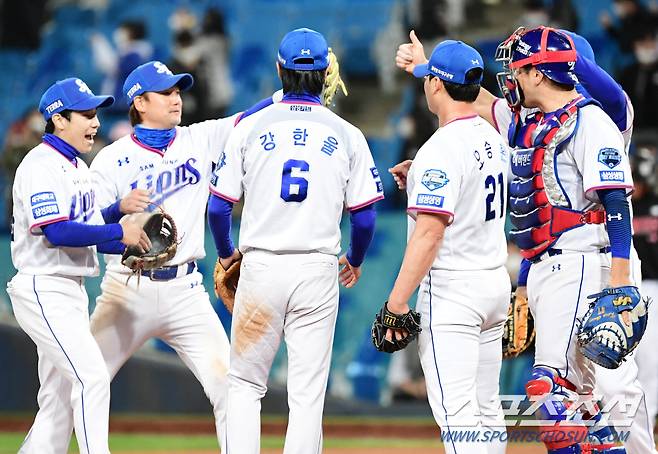 22일 대구 삼성라이온즈파크에서 KBO리그 삼성과 KT의 경기가 열렸다. 삼성이 KT에 4대 2로 승리했다. 경기 종료 후 승리의 기쁨을 나누고 있는 삼성 선수들. 대구=송정헌 기자 songs@sportschosun.com/2021.10.22/