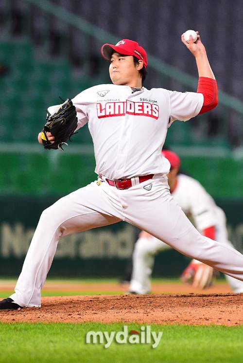 [마이데일리 = 인천 곽경훈 기자] SSG 김태훈이 22일 오후 인천 SSG랜더스필드에서 진행된 '2021 신한은행 SOL KBO리그' 두산-SSG의 경기 7회초 구원 등판해 역투를 펼치고 있다.- ⓒ마이데일리(www.mydaily.co.kr). 무단전재&재배포 금지 -
