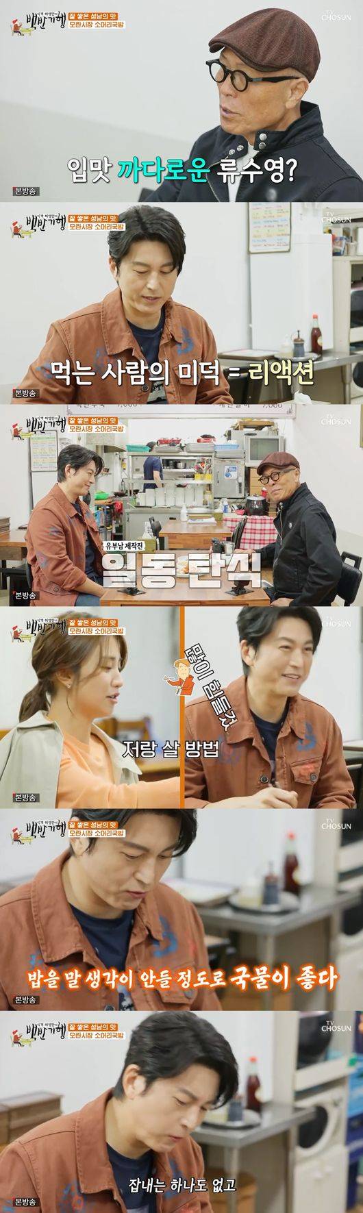 이날 허영만과 류수영은 성남에서 유명한 모란시장의 소머리국밥을 맛보러 향했다. 류수영은 소머리국밥의 당면을 보고 "당면이 들어간 건 국물이 맑다는 의미"라고 말했다. 이에 국밥집 사장은 "음식에 정말 조예가 깊으신 것 같다"라고 감탄했다. 소머리국밥을 맛 본 류수영은 "국물이 정갈하다. 맛이 고급스럽다"라고 말했다.