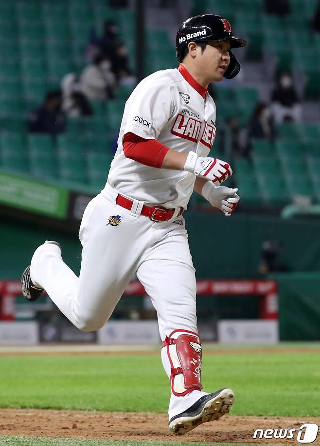 (인천=뉴스1) 김명섭 기자 = 22일 오후 인천 미추홀구 SSG 랜더스필드에서 열린 프로야구 '2021 신한은행 SOL KBO리그' 두산 베어스와 SSG랜더스의 경기에서 7회말 무사 상황 SSG 최정이 안타를 치고 진루하고 있다. 2021.10.22/뉴스1