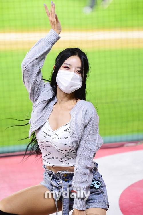 [마이데일리 = 인천 곽경훈 기자] SSG 치어리더 장은유가 22일 오후 인천 SSG랜더스필드에서 진행된 '2021 신한은행 SOL KBO리그' 두산-SSG의 경기에서 응원을 펼치고 있다.- ⓒ마이데일리(www.mydaily.co.kr). 무단전재&재배포 금지 -