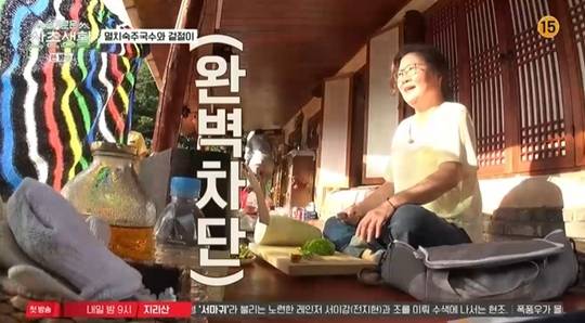 이날 김해숙은 자식 같은 멤버들을 위해 직접 불고기, 잡채 등을 만들었다. 재료를 다듬는 김해숙에 햇볕이 쏟아지자 멤버들은 황급히 차단막을 꺼냈다.