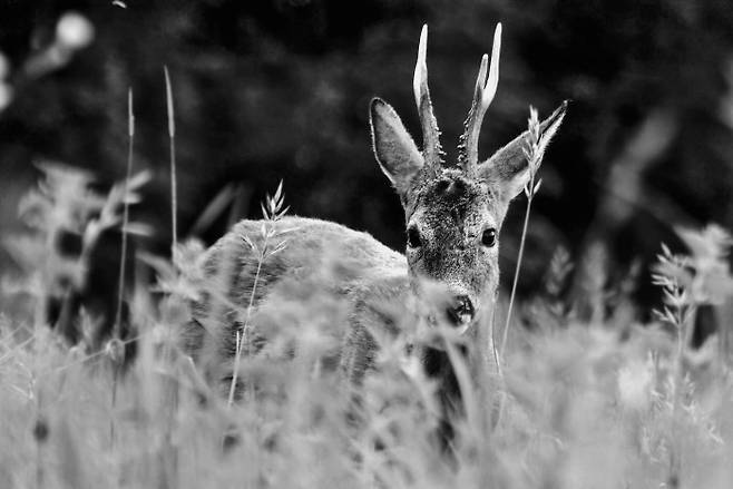 숲에서의 삶은 그야말로 ‘노루적’이었다. 텐트도, 은신처도, 침낭도 없었다. 몸에 지닌 것이라곤 배낭 두 개와 내복, 울 스웨터, 양말, 모자, 운동화가 전부였다. 노루의 생활 리듬을 좇아 추운 밤 대신 낮에 쪽잠을 잤고, 대개 이파리나 도토리 등 채집한 식물로 배를 채웠다. 이 순간을 영원히 기억하기 위해 이따금씩 카메라를 든 것 외에는, 자연과 완벽하게 동화된 삶이었다. 그는 노루에게 길들여진 인간, 즉 ‘노루인간’이 됐다.