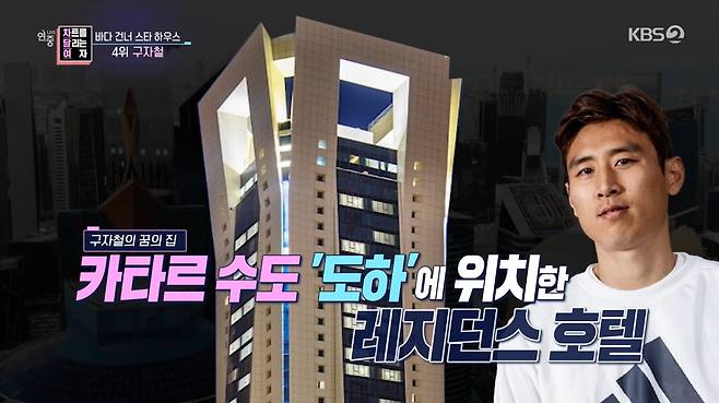 4위는 축구선수 구자철이다. 현재 카타르 리그에서 뛰고 있는 그는 카타르 도하 럭셔리 레지던스 호텔에 가장 상위층 펜트하우스에 살고 있다. 대문을 열면 펼쳐지는 고급 느낌과 창문밖 풍경을 자랑한 그의 집 규모는 110평이다.