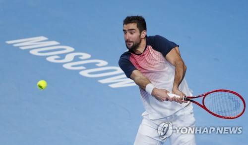 epa09538910 Marin Cilic of Bosnia-Herzegovina in action during the men's quarterfinal match against Pedro Martinez of Spain at the Kremlin Cup tennis tournament in Moscow, Russia, 22 October 2021. EPA/YURI KOCHETKOV
