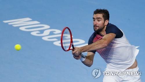 epa09538911 Marin Cilic of Bosnia-Herzegovina in action during the men's quarterfinal match against Pedro Martinez of Spain at the Kremlin Cup tennis tournament in Moscow, Russia, 22 October 2021. EPA/YURI KOCHETKOV