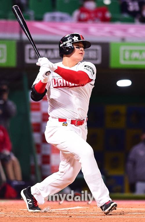 [SSG 추신수가 22일 오후 인천 SSG랜더스필드에서 진행된 '2021 신한은행 SOL KBO리그' 두산-SSG의 경기 1회말 무사 1,2루에서 두산 선발 박종기를 상대로 적시타를 때리고 있다. 사진 = 인천 곽경훈 기자 kphoto@mydaily.co.kr]- ⓒ마이데일리(www.mydaily.co.kr). 무단전재&재배포 금지 -