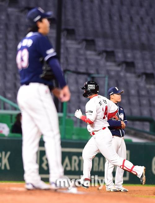 경기 초반이지만 패색이 짙은 두산은 4회초 호세 미구엘 페르난데스의 볼넷과 김재환의 2루타로 만들어진 1사 2, 3루에서 김인태의 2루수 땅볼로 한 점을 추격했다. 그러자 SSG는 4회말 다시 1점을 달아나며 간격을 유지했다.