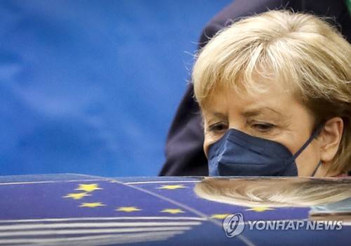 German Chancellor Angela Merkel departs after an EU summit in Brussels, Friday, Oct. 22, 2021. European Union leaders concluded a two-day summit on Friday in which they discussed issues such as climate change, the energy crisis, COVID-19 developments and migration. (Olivier Hoslet, Pool Photo via AP) POOL PHOTO